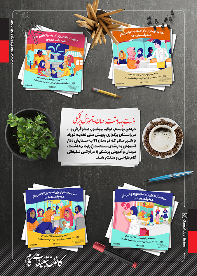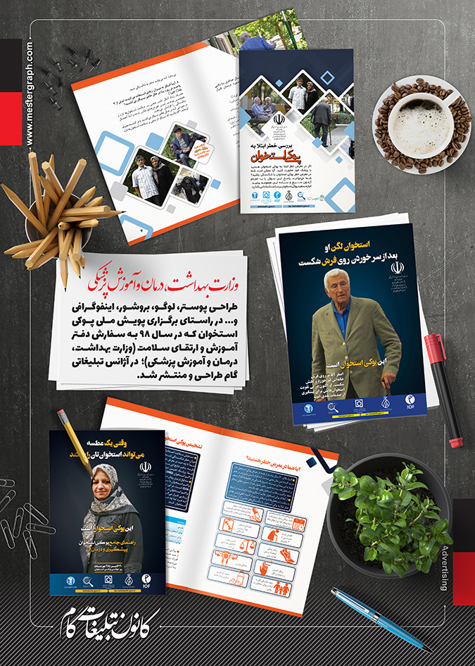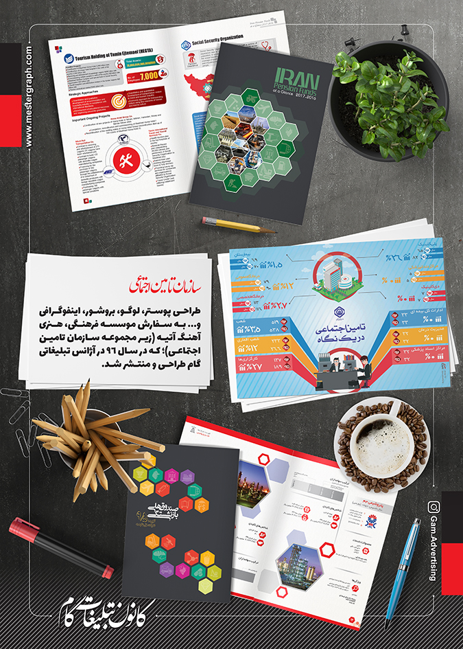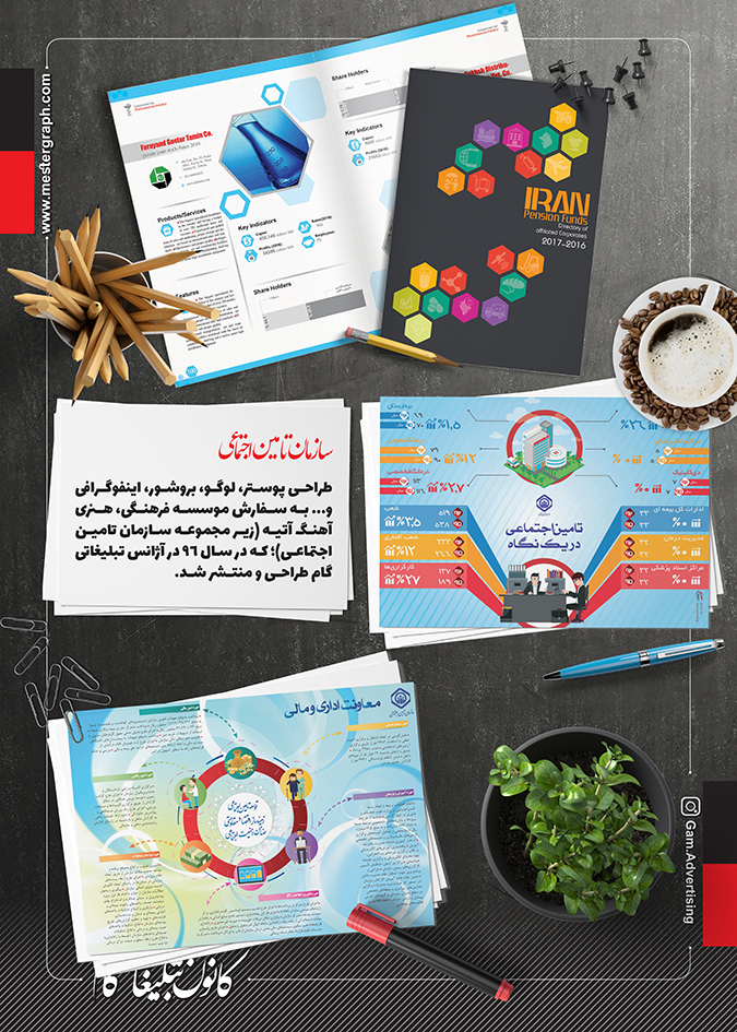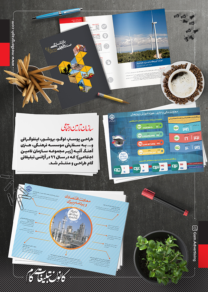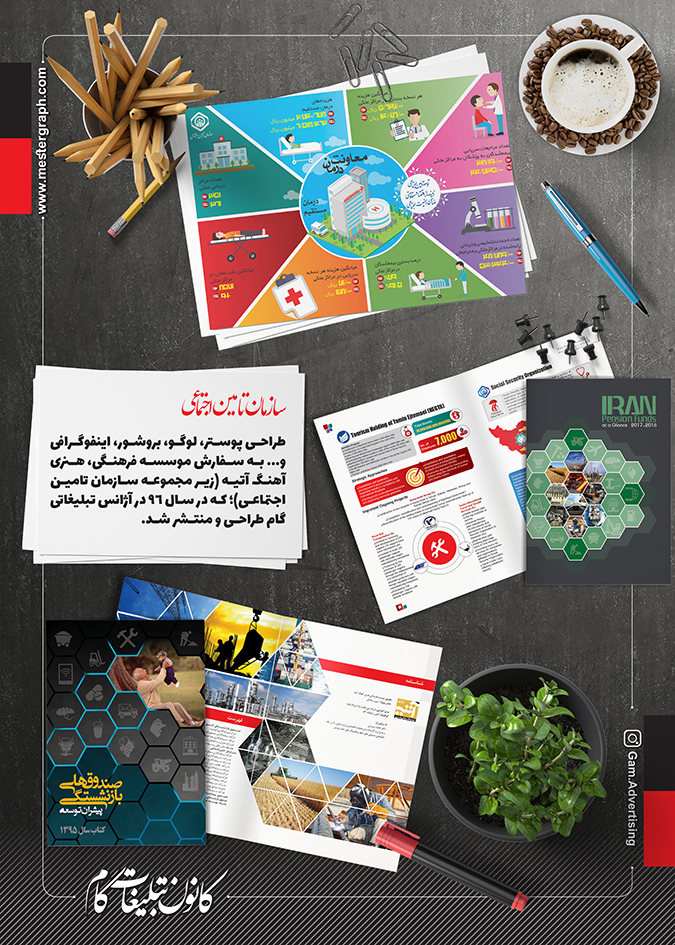 اتاق بازرگانی، سازمان ارتباطات زیرساخت، وزارت فرهنگ و ارشاد اسلامی، سازمان تأمین اجتماعی، پلیس آگاهی، بنیاد سینمایی فارابی، سازمان منطقه آزاد، سازمان فرهنگی هنری شهرداری تهران، صندوق سرمایه‌گذاری صنایع کوچک، شرکت ساختمانی دی، مؤسسه فرهنگی هنری آهنگ آتیه، هفته‌نامه شنبه، محصولات بهداشتی لی‌کل، محصولات آرایشی‌بهداشتی اوکیا، مدیریت هنری در نشریات متعدد و …